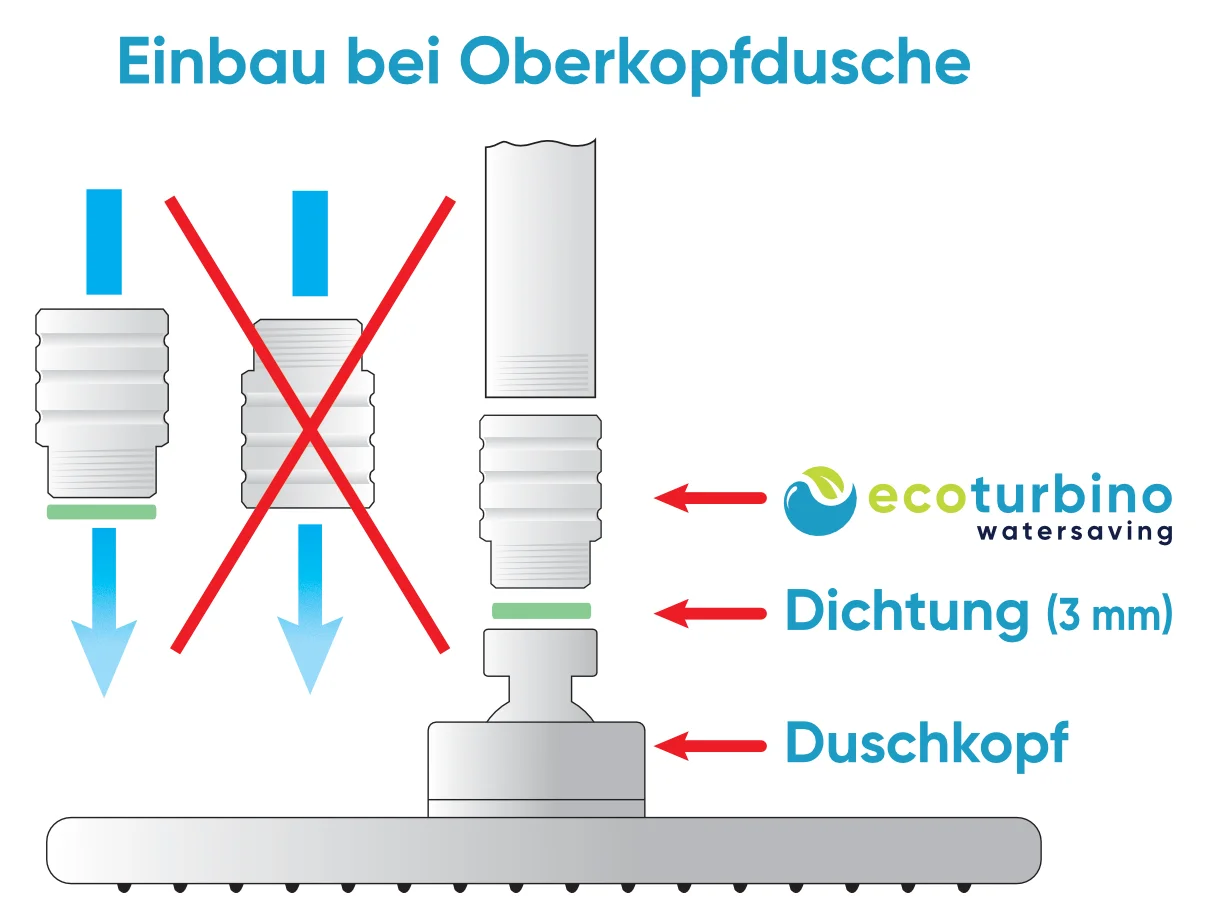 Hinweis bei der Verwendung eines ecoturbino an einer handelsüblichen Überkopfdusche